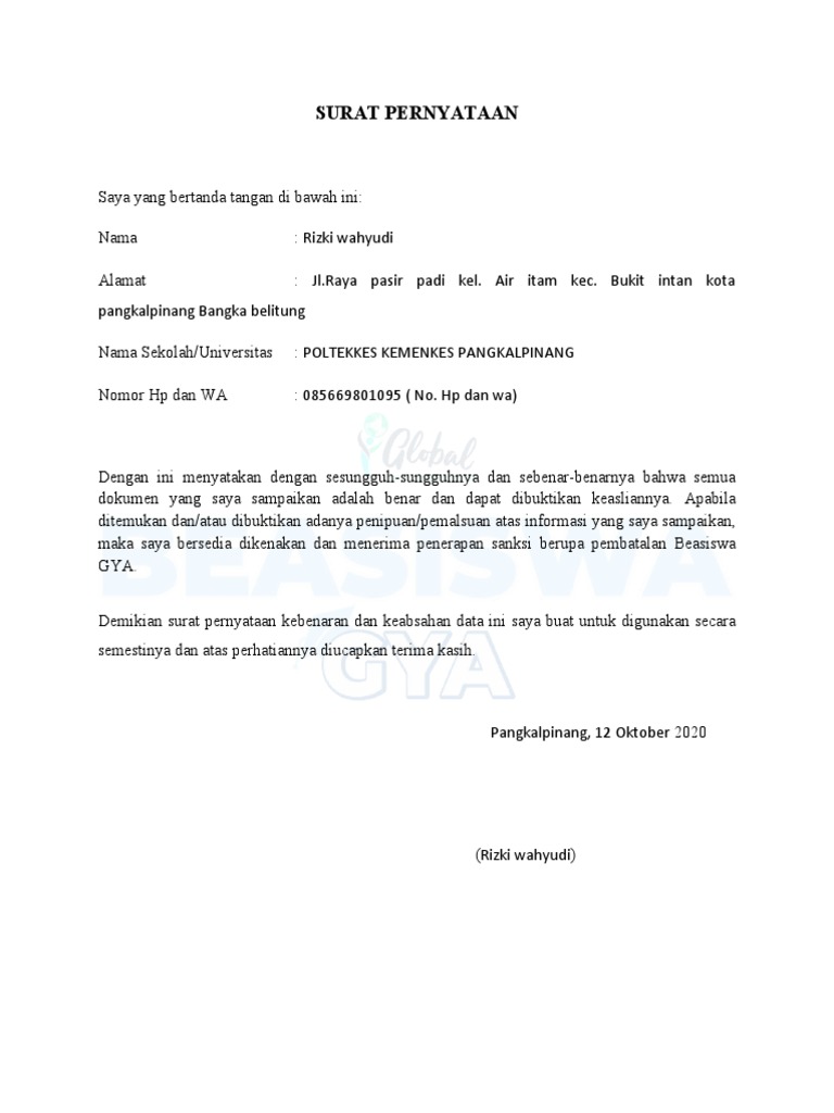 Semestinya dan atas perhatiannya diucapkan terima k. Setiap perusahaan pada saat ini wajib memiliki nib. Apabila ditemukan dan/atau dibuktikan adanya penipuan/pemalsuan atas informasi yang saya sampaikan, maka saya bersedia dikenakan dan menerima penerapan sanksi berupa pembatalan beasiswa gya. Pendaftaran beasiswa gya adalah agenda tahunan yaitu pemberian beasiswa kepada siswa. Khs kumulatif & krs semester terakhir. Seluruh pernyataan data dan informasi beserta seluruh dokumen yang saya lampirkan dalam berkas pendaftaran seleksi penerimaan taruna baru politeknik kp bone tahun 2016 adalah benar. Demikian surat pernyataan kebenaran dan keabsahan d. Persyaratan berkas administrasi beasiswa mahasiswa kurang mampu. See u soon download buku panduan. Surat pernyataan keabsahan data yang diberikan dipergunakan untuk melengkapi lampiran permohonan beasiswa bantuan biaya pendidikan untuk mahasiswa program studi diploma tiga (d3) dan strata satu (s1) yang berasal dari provinsi riau. Keterangan di atas dapat dibuktikan dan didukung oleh dokumen pelengkap. Jangan lupa klik like dan subscribe ya. Selanjutnya segera di siapakan persyaratan pendaftaran beasiswa gya 2020 dan jangan sampai ada yang keliru ataupun ketinggalan.